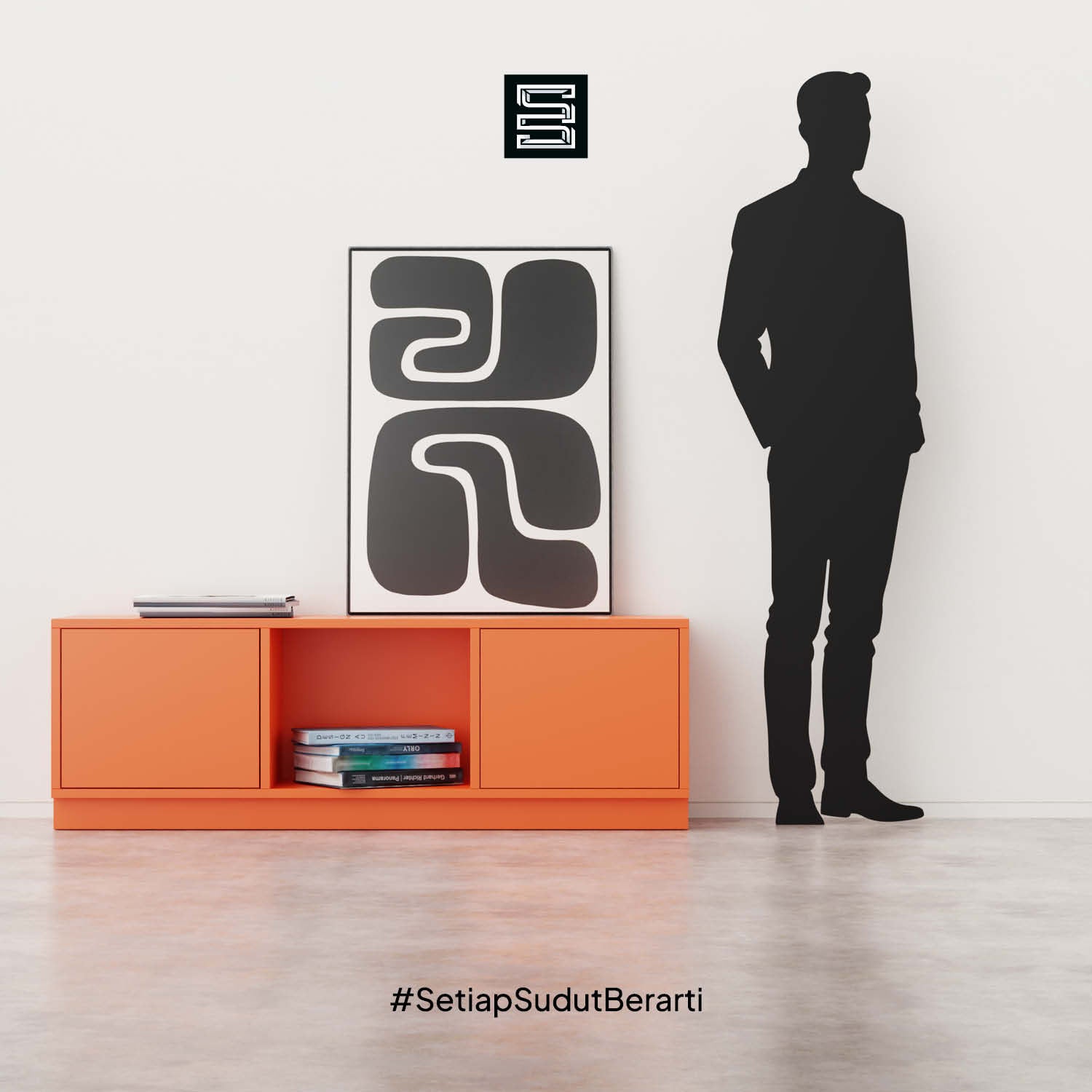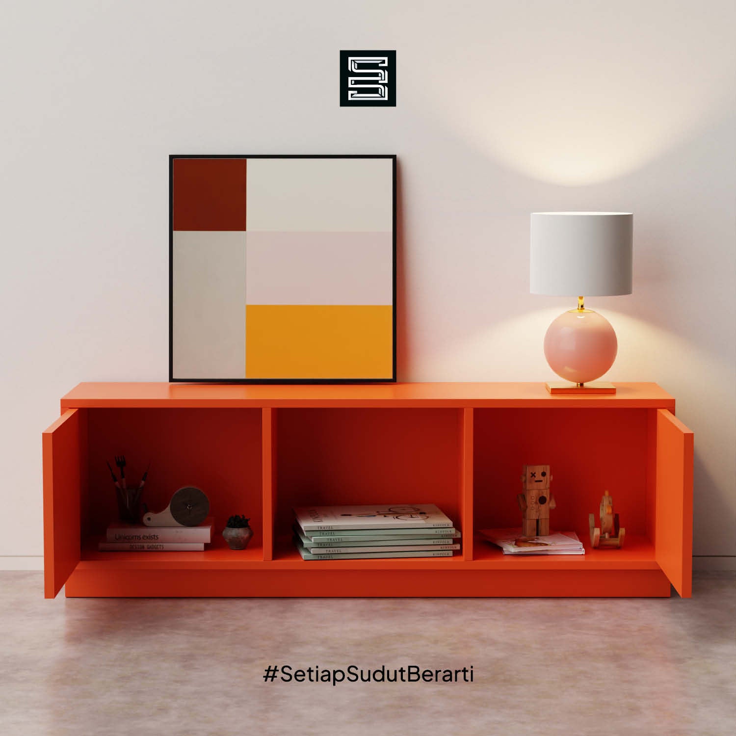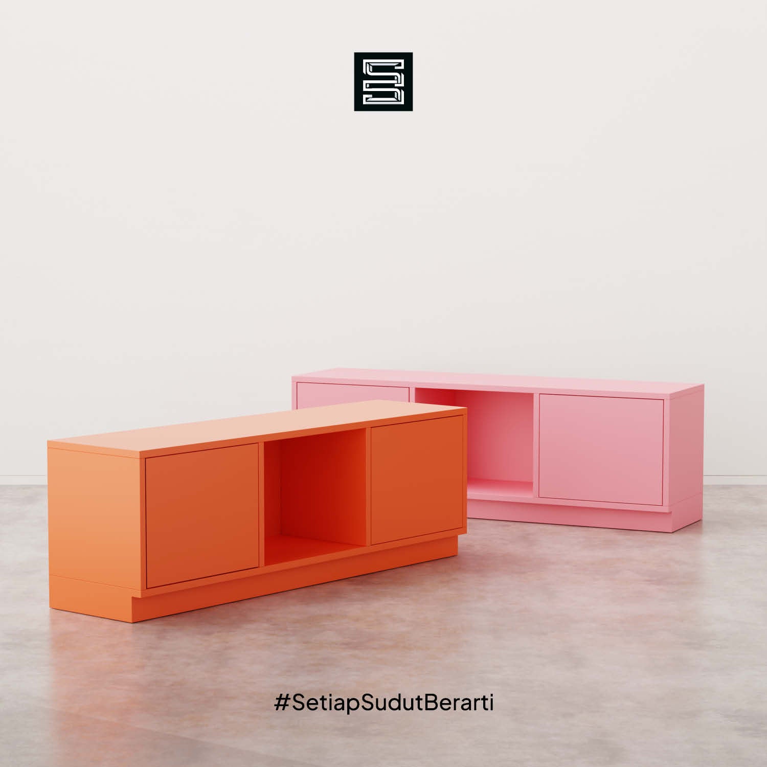 Bangku penyimpanan multifungsi dengan ruang luas di bagian bawah. Desainnya panjang dan rendah — bisa digunakan sebagai tempat duduk sekaligus rak simpan barang.