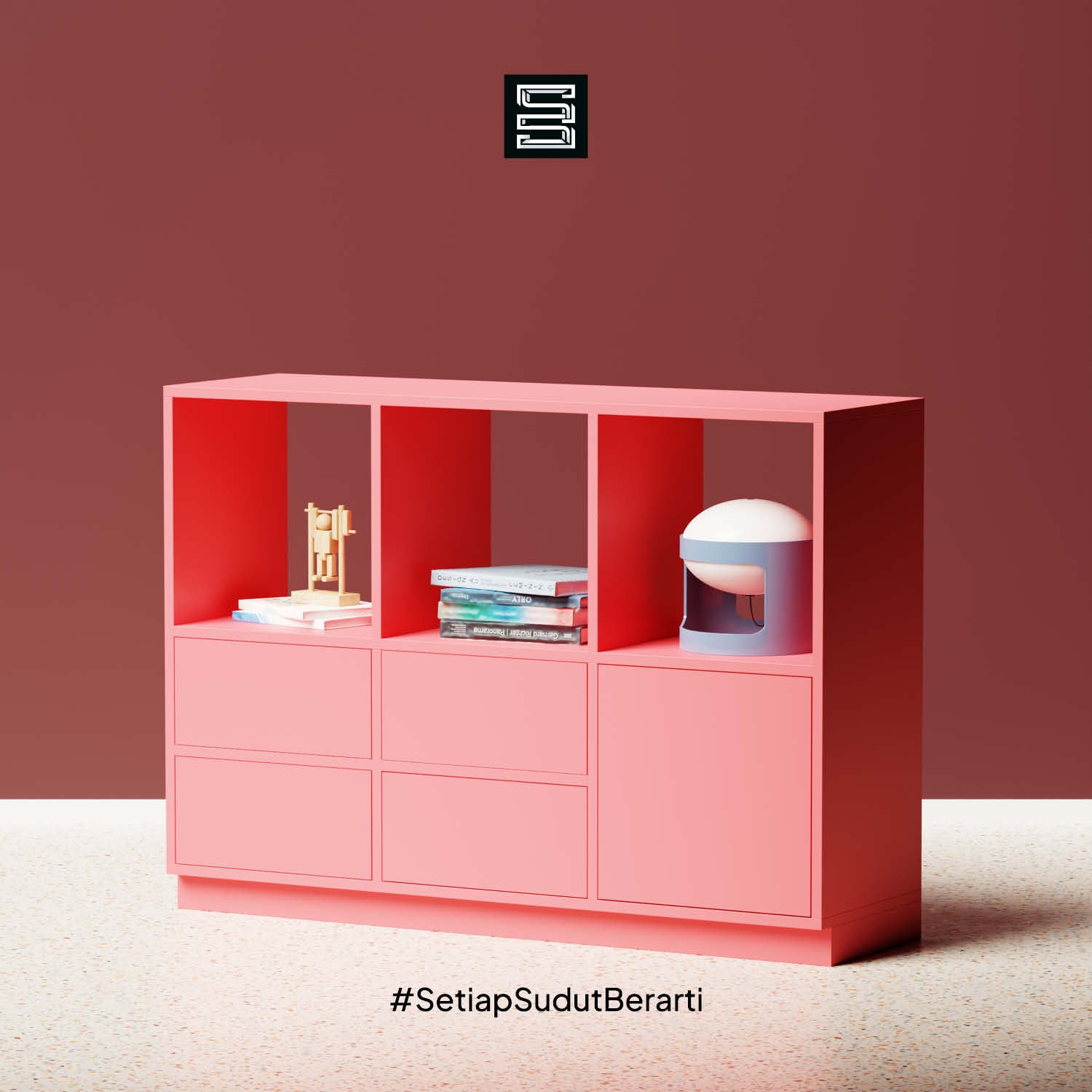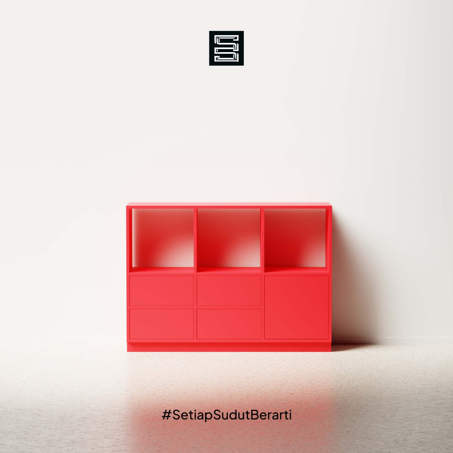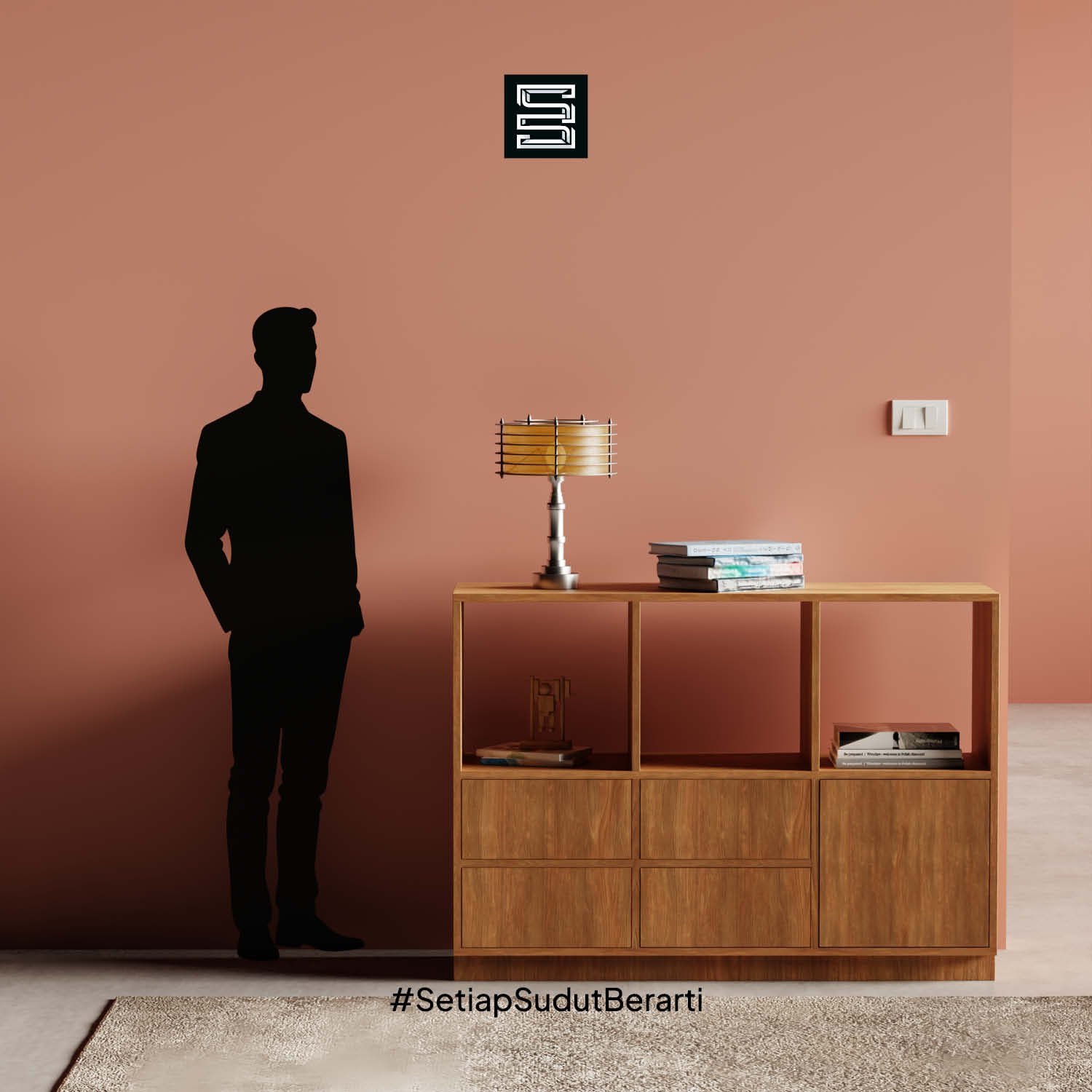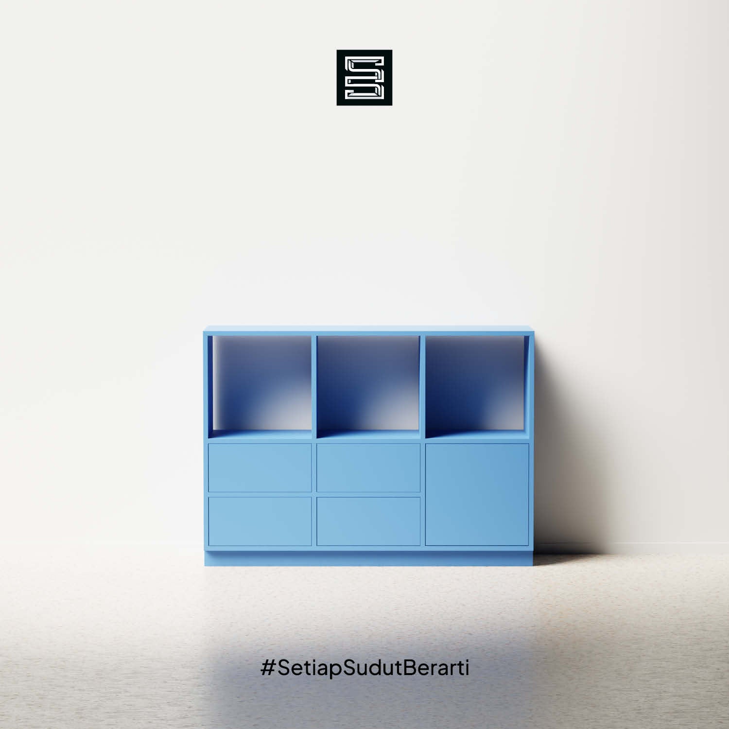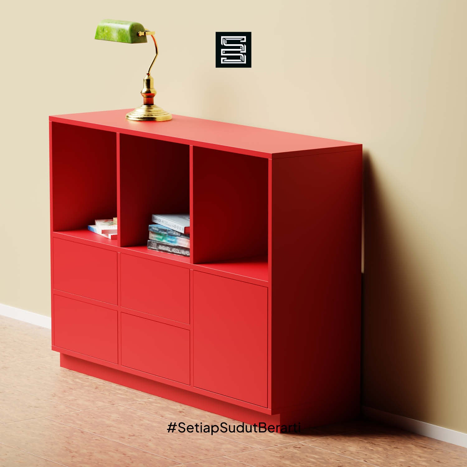 Buffet dengan desain minimalis modern yang memadukan fungsi dan estetika. Dilengkapi ruang terbuka dan laci tertutup untuk menyimpan perlengkapan makan, koleksi dekorasi, atau dokumen rumah tangga agar ruangan tetap bersih dan rapi.