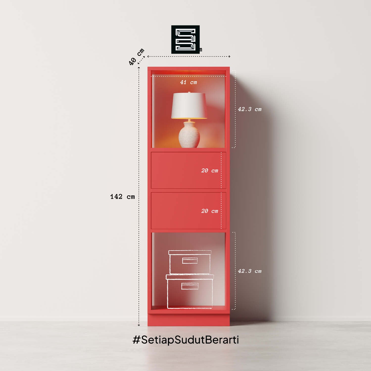Rak buku ramping dengan desain vertikal yang hemat ruang. Tingginya pas untuk menampung koleksi buku, dokumen, hingga dekorasi tanpa memakan banyak tempat.