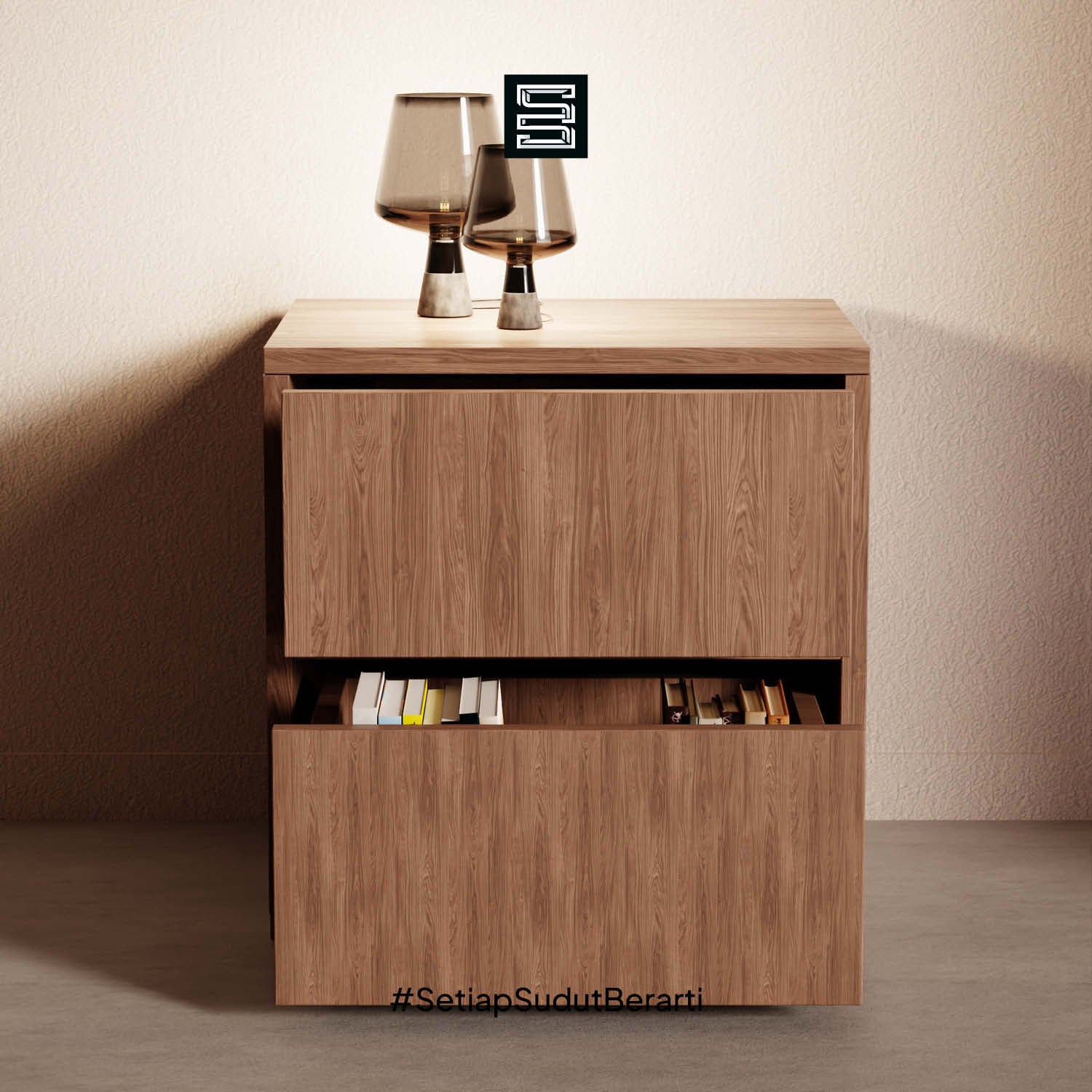 Kamar jadi kelihatan cozy tapi tetap fungsional! Nakas ini nggak cuma buat taruh barang, tapi juga bisa jadi spot display minimalis di sebelah tempat tidur.