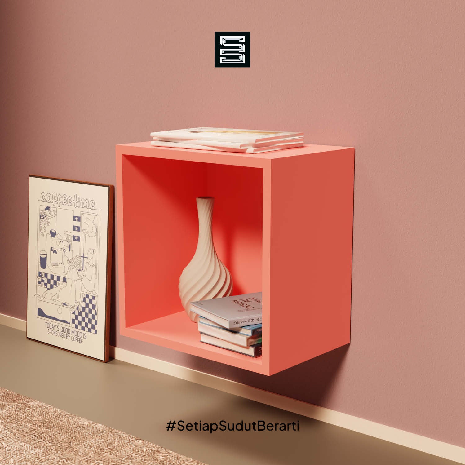 Rak serbaguna minimalis yang bisa kamu taruh di lantai atau digantung di dinding. Ukurannya kecil tapi fungsional — cocok buat ruang sempit yang butuh ekstra tempat penyimpanan.